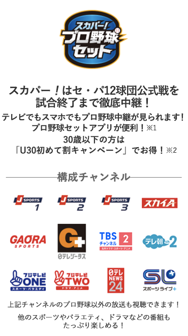 例えばプロ野球セットをご契約いただく場合