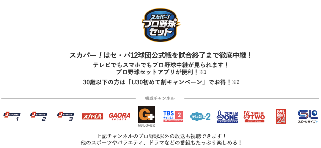※1 配信で視聴できる番組は、スカパー!プロ野球セットアプリまたは スカパー!プロ野球サイトをご確認ください。