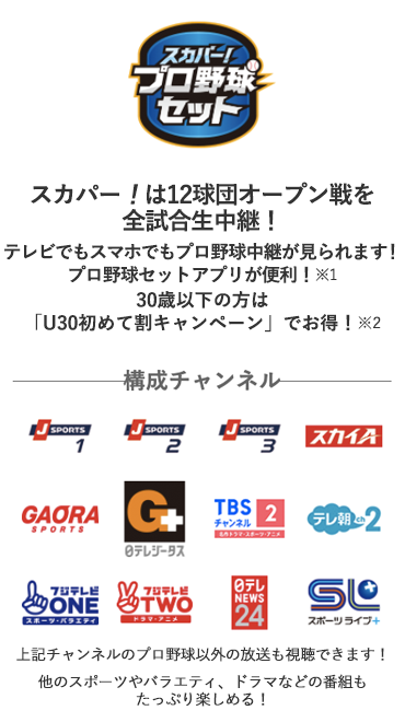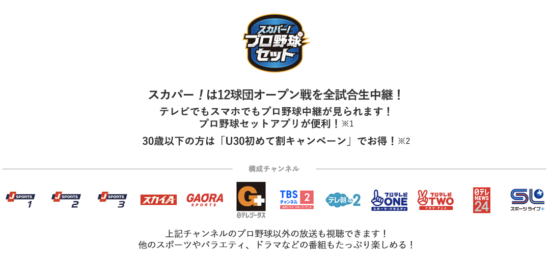 ※1 配信で視聴できる番組は、スカパー!プロ野球セットアプリまたは スカパー!プロ野球サイトをご確認ください。