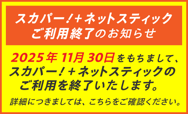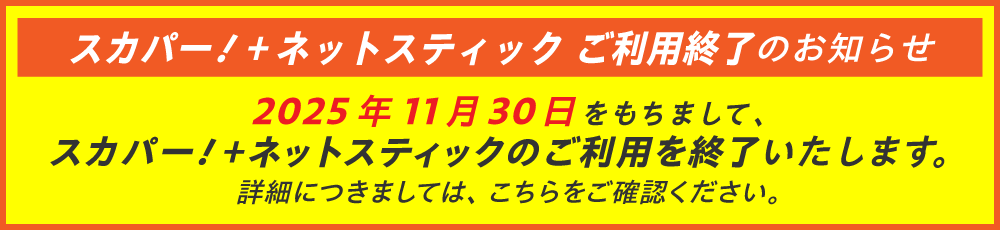 - アンケートにご回答いただけない等の場合は、スカパー!+ネットスティックをご返却いただきます(送料はお客様負担)。万が一、ご返却いただけない場合は、商品代として7,000円をご請求いたします。